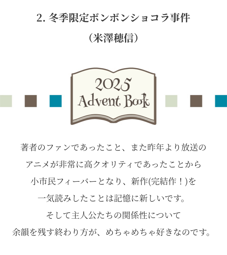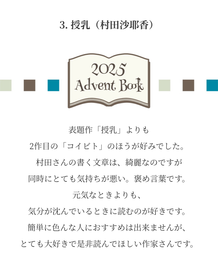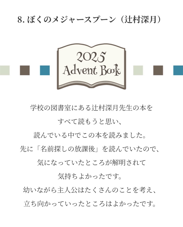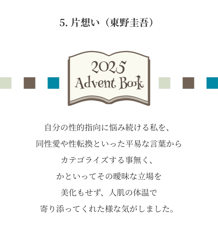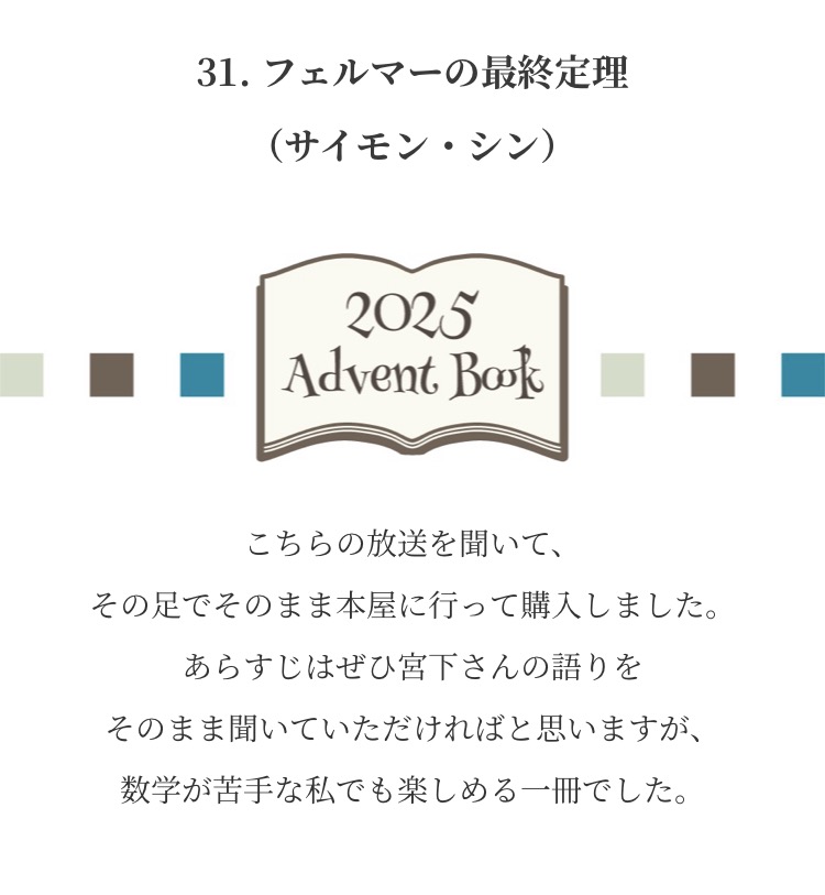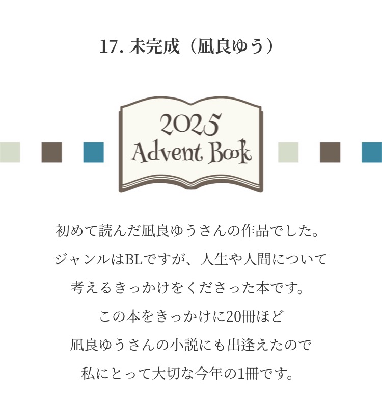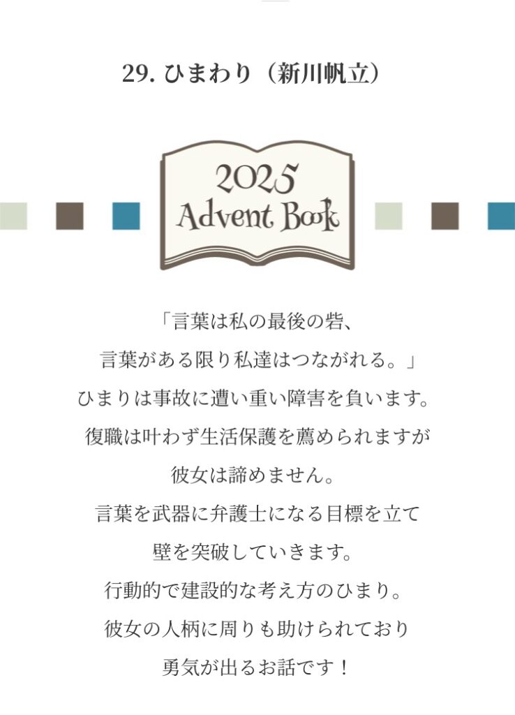 Advent Books 20252025年12月1日 みなさまからお寄せいただいた『私が選ぶ 今年の1冊』新年までのアドベントカレンダー方式で毎日1冊ずつご紹介させていただきました こちらから全作品がご覧になれます ↓ タップ or クリック ↓ これが気になります!